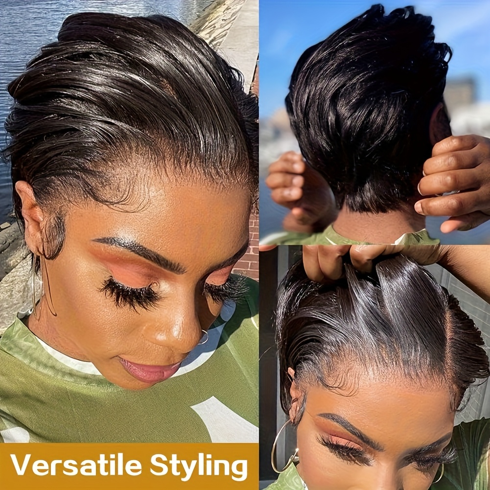 13x4 Frontal Lace Natural Black Color Brazilian Human Hair Wig 150% Density. Pixie Cut Bob Wig 150% Density $45.21PriceColorSelectHair Length6inchQuantity*Add to Cart